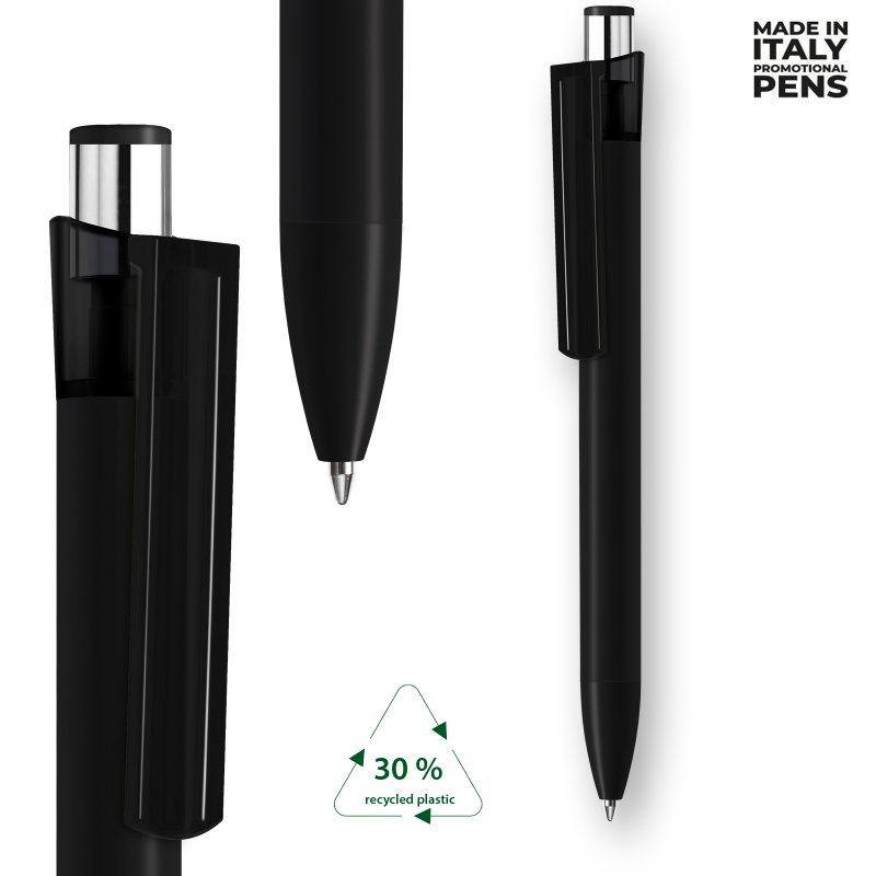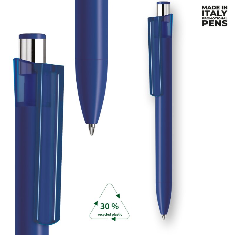 ABS solid shiny barrel and Terlux transparent shiny clip Chromed metal pusher Jumbo Refill - 2 Km Writing - 1 mm ø ball Dokumental ink - available in blue and black